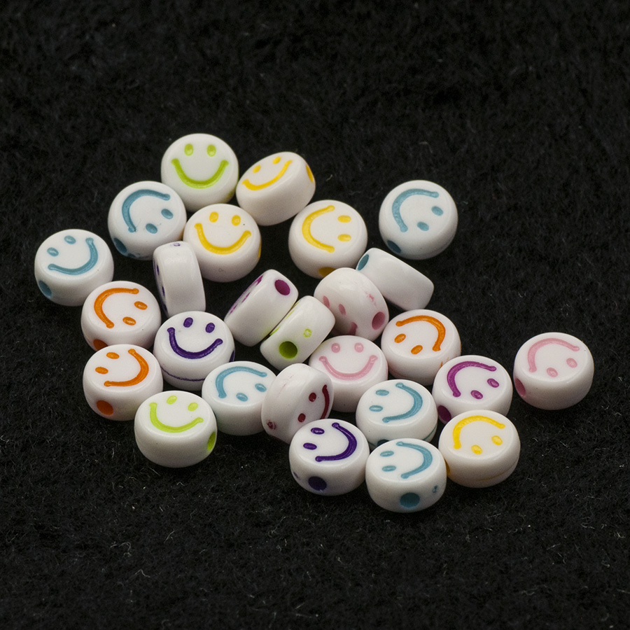 Kul akrylpärla med glada smileys på i flera olika färger.