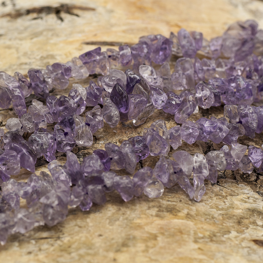 Vackra, oregelbundna chips av halvädelstenen Ametist. Påsens innehåll har packats efter vikt, varför antal kan variera något men påsen innehåller ca 50-55 chip.