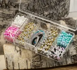 Månbox med akrylpärlor och tråd, Färgmix (st)