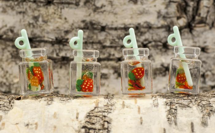 Läskande, speciell berlock att pynta ditt smycke med. Ett litet glas, fyllt med en härlig juice gjord på jordgubbar, serveras med ett sugrör.