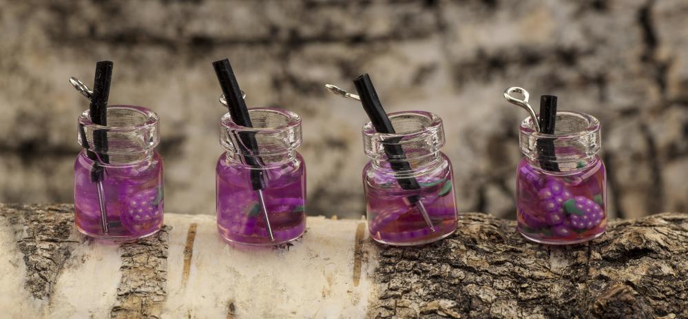 Läskande, speciell berlock att pynta ditt smycke med. Ett litet glas, fyllt med en härlig juice gjord på lila vindruvor och äppeljucie, serveras med ett sugrör.