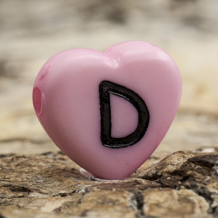 Kul hjärtformad pärla i akryl med bokstaven D på.