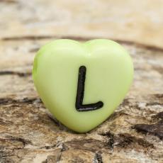 Kul hjärtformad pärla i akryl med bokstaven N på.