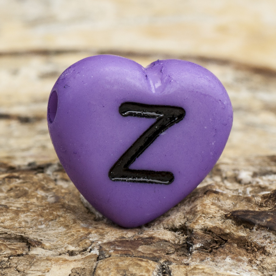 Kul hjärtformad pärla i akryl med bokstaven Z på.