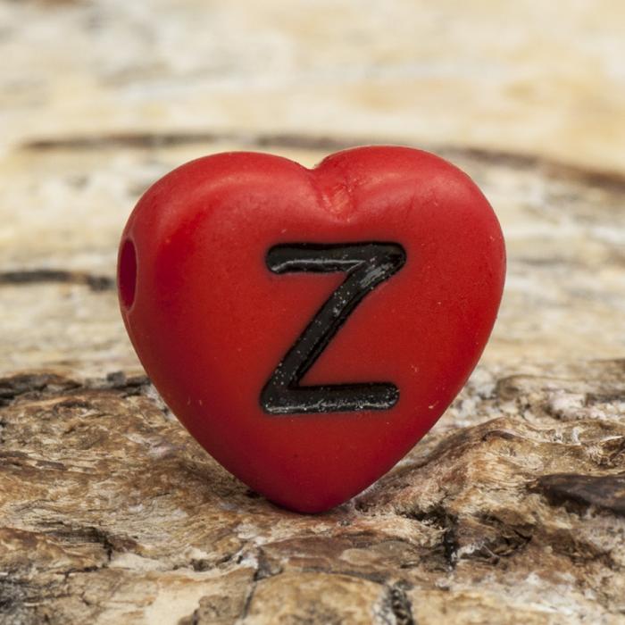 Kul hjärtformad pärla i akryl med bokstaven Z på.