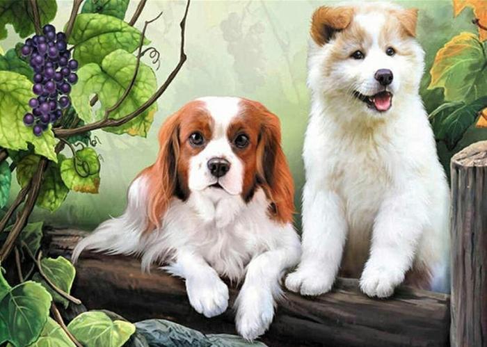 Ett lekfullt motiv med söta valpar i en varm och inbjudande miljö som sprider glädje.