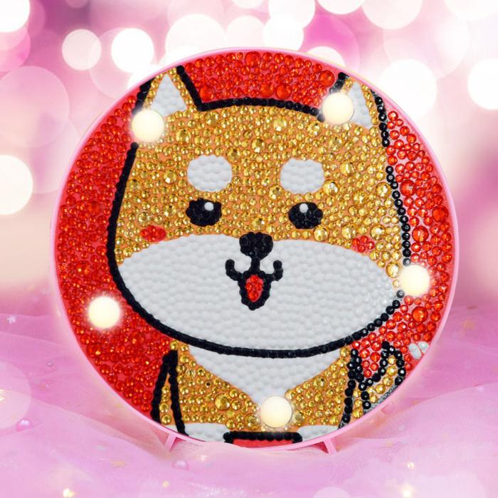 Hund, diamond painting som lampa med motiv på en gullig liten hund. Duttpenna, vax och pärltråg ingår.