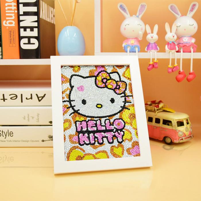 Hello Kitty, diamond painting i ram med vår favoritkatt på en färglad bakgrund. Duttpenna, vax och pärltråg ingår.