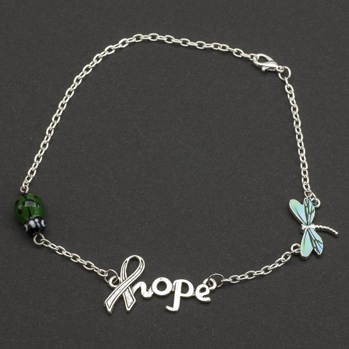 I denna ankelkedjan följer lite extra hopp med som kanske symboliserar något väldigt speciellt för just dig. Den vackra nyckelpigan och trollsländan sätter lite färg och gör det där lilla extra för att länken ska bli komplett.