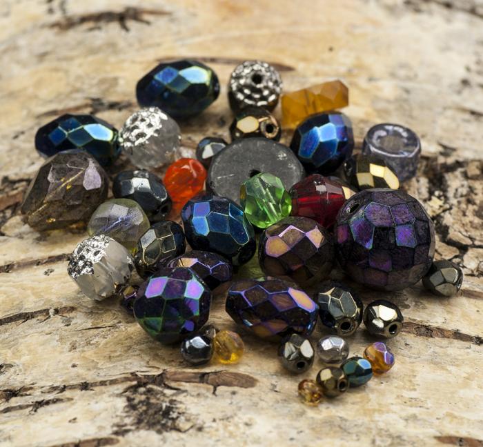 Vackra unika facetterade glaspärlor i olika storlekar och former. En härlig blanding av runda, ovala och droppformade pärlor i en fantastisk färgmix med AB beläggning.