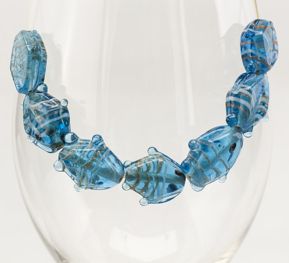 Vacker, handgjord glaspärla i form av en fisk med det där lilla extra i en härlig himmelsblå färg.