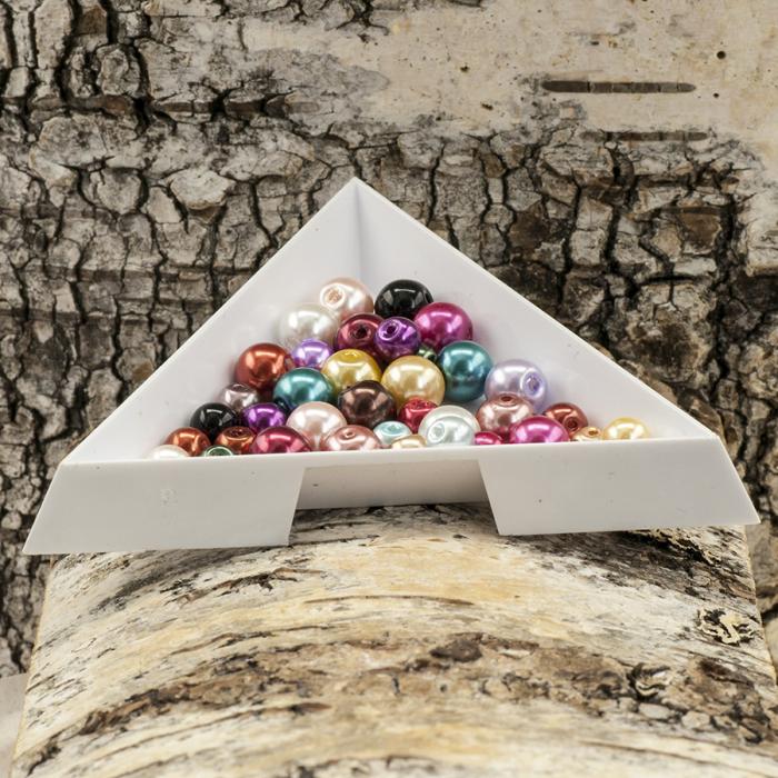 Smidiga små trianglar i hårdplast är perfekta för dig som vill ha många pärlsorter och tillbehör framme under arbetet. Nu blir det lätt att sortera, räkna, ta upp pärlor och tillbehör från pärlmattan samt hälla dem i påsar tack vare trianglarnas praktiska form.