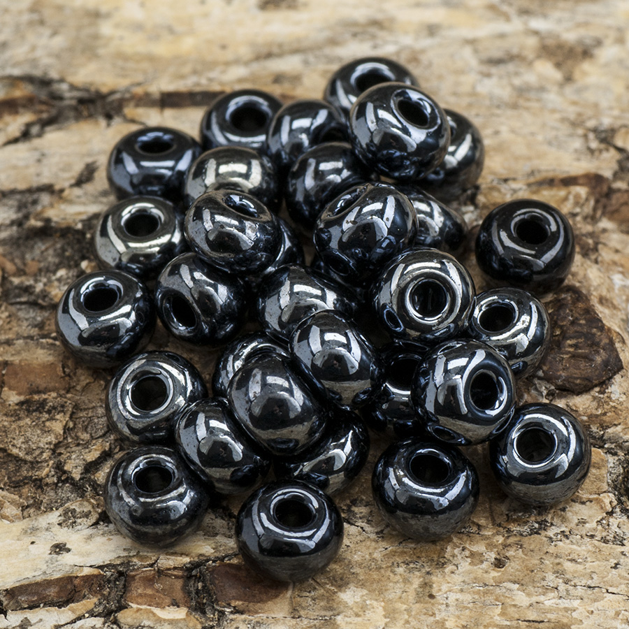 Seed bead/Rocaille (4/0) av Preciosa från Tjeckien med metallic-skimmer. Påsen innehåller ca 150 pärlor.