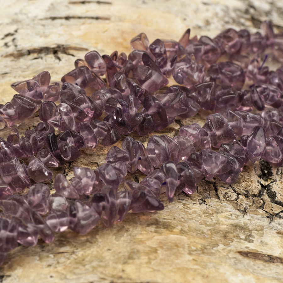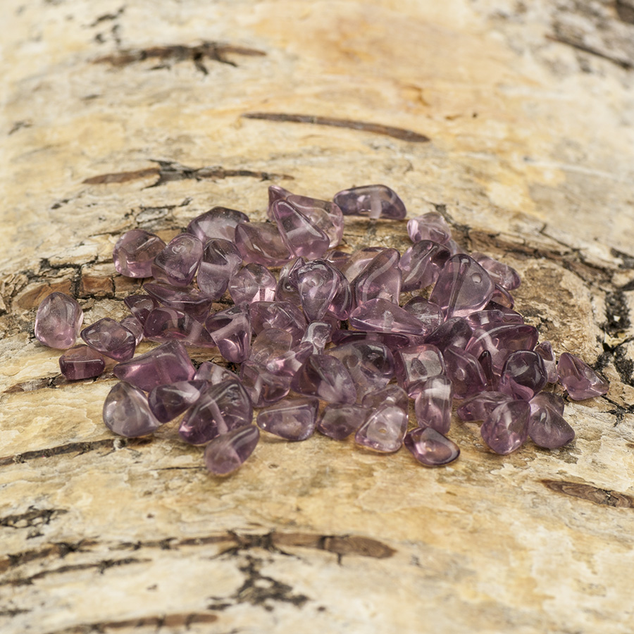 Vackra, oregelbundna chips av syntetisk, lila sten liknande färg som ametist. Cirka 30 st i olika storlekar.