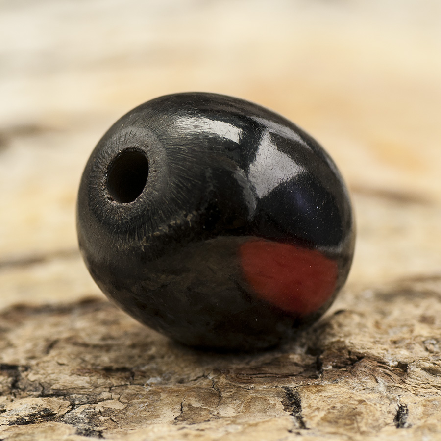 Läckra, träpärlor av större modell i svart färg med röda detaljer. Perfekt för barn att pyssla med.