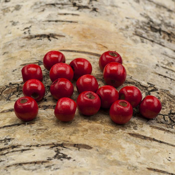 Blyfri träpärla i shabby chic med en vacker röd färg. Då det är ett naturmaterial kan storlek och form variera på pärlorna.